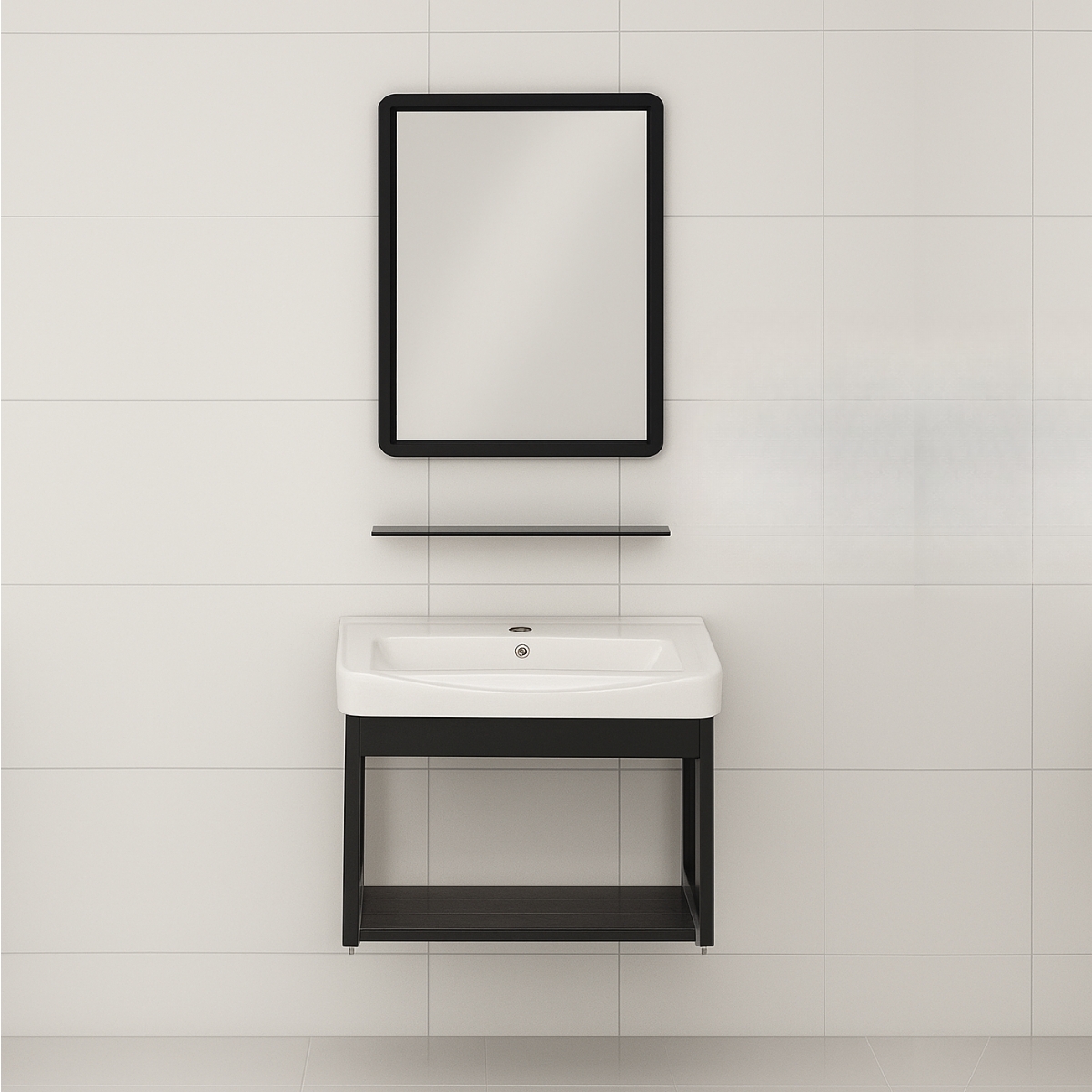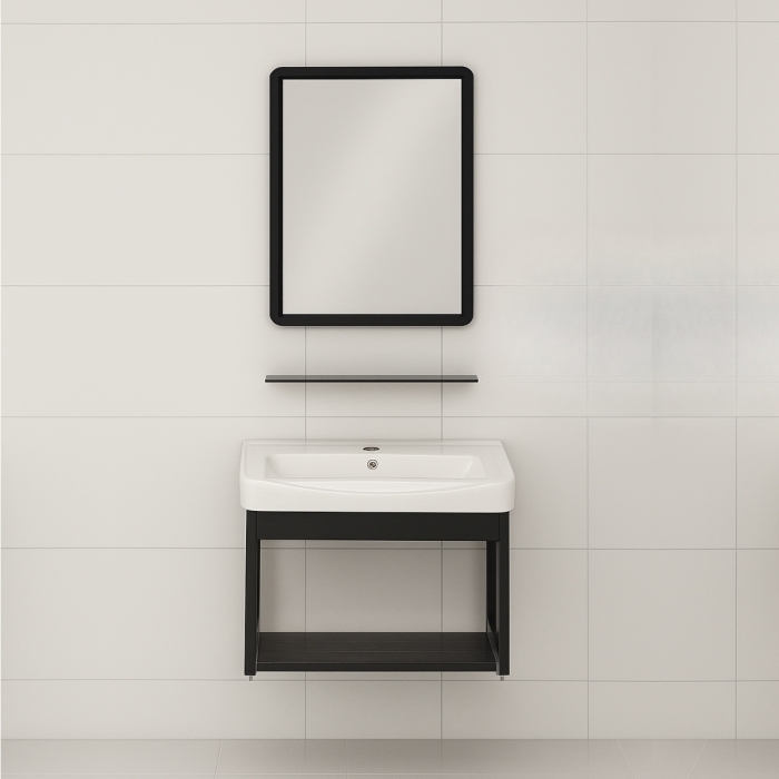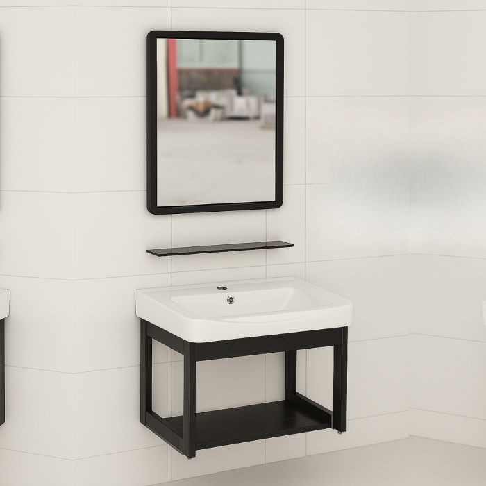- Tủ & kệ gương được làm từ chất liệu hợp kim nhôm sơn tĩnh điện màu đen nhám với khả năng chịu nước tuyệt đối, chống mối mọt, cong vênh đảm bảo độ bền lâu dài.