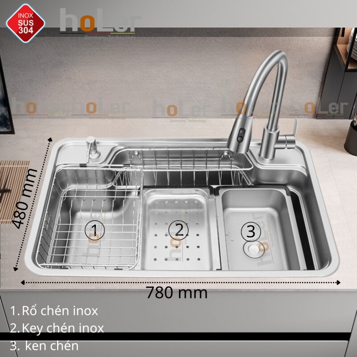 Chậu Rửa Chén 1 Hộc Inox 304 Holer HLCR735-7848D