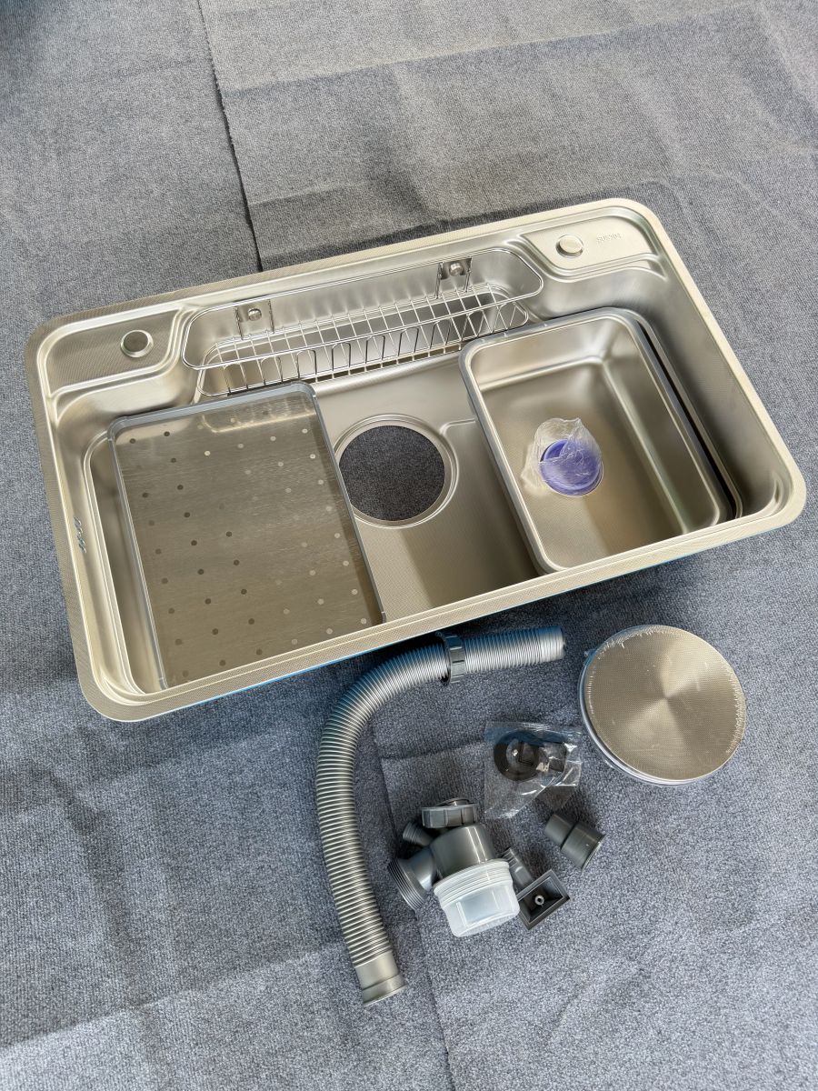 Chậu rửa bát được sản xuất trên công nghệ tiên tiến của Đức dập liền nguyên khối ( Không hàn mài )