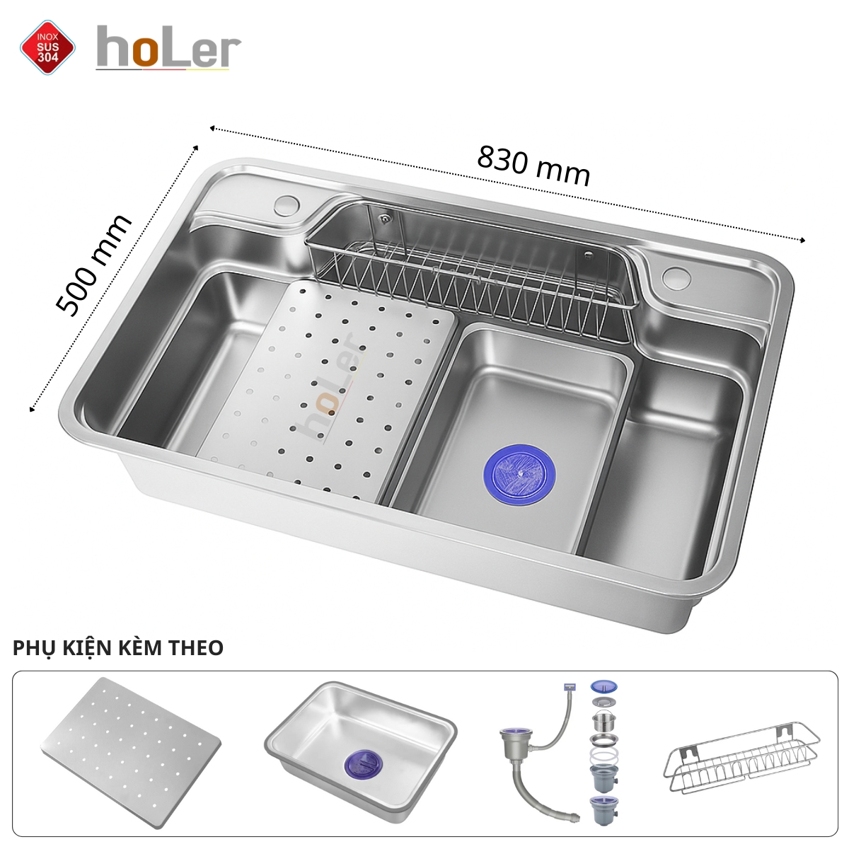 Chậu Rửa Chén 1 Hộc Inox 304 Holer HLCR745-8350 ( Đặt Bàn - Âm Bàn )