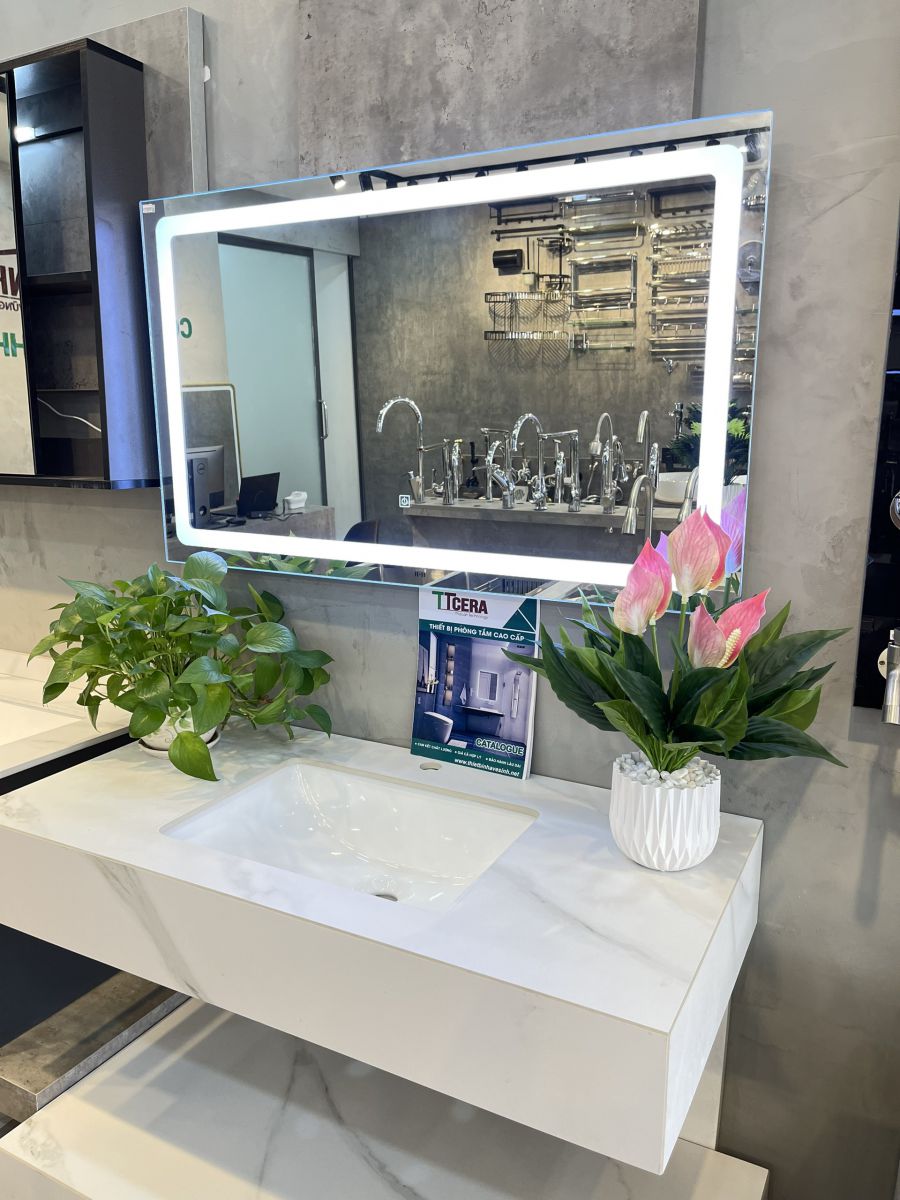 Combo Bàn Đá Trắng 1 Tầng Chống Trầy Gương Led TLVBD-14