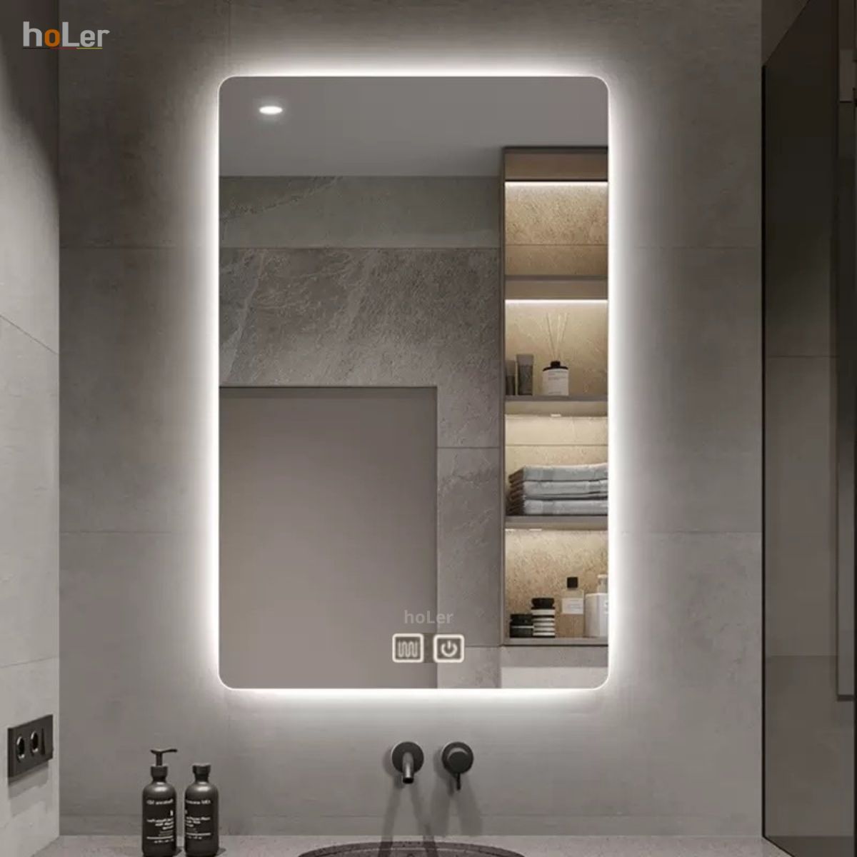 Gương Đèn Led 3 Màu Chữ Nhật Có Nút Cảm Ứng Và Sấy Holer HLG26