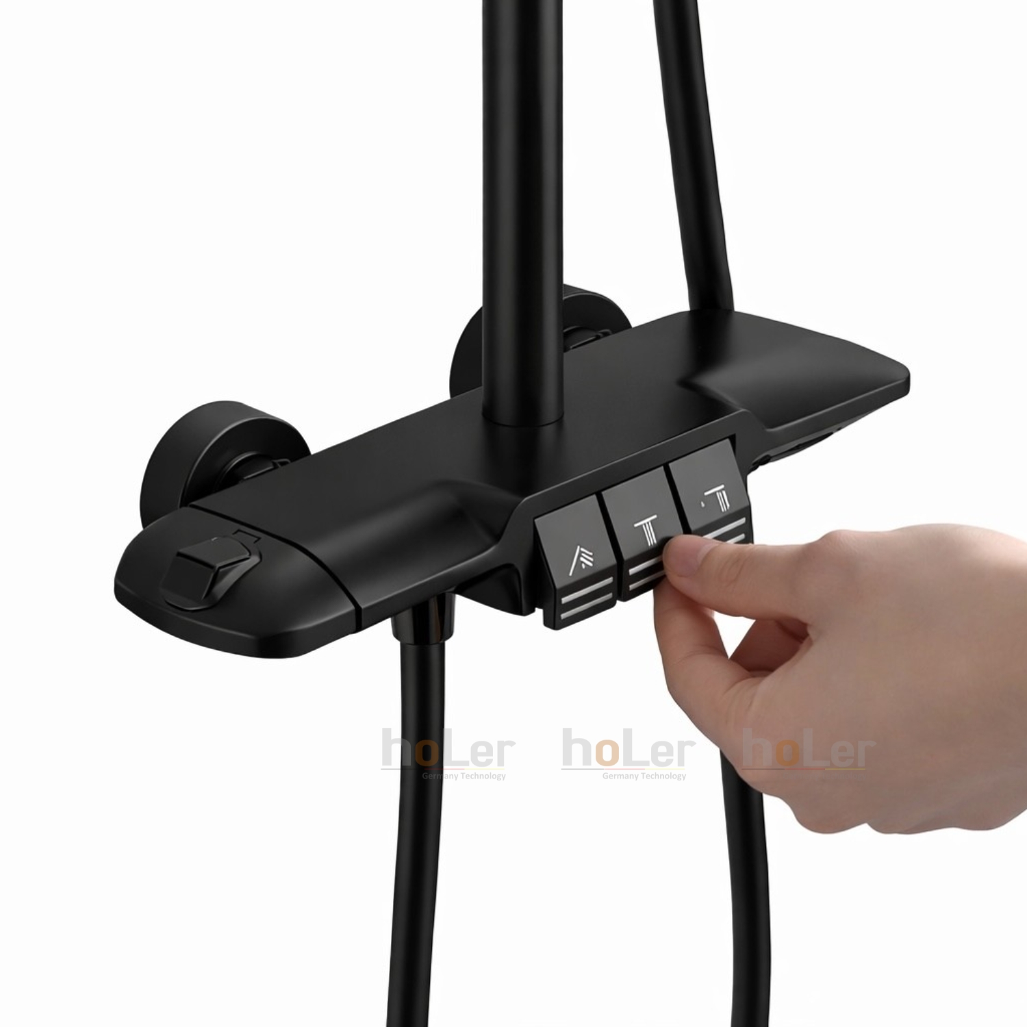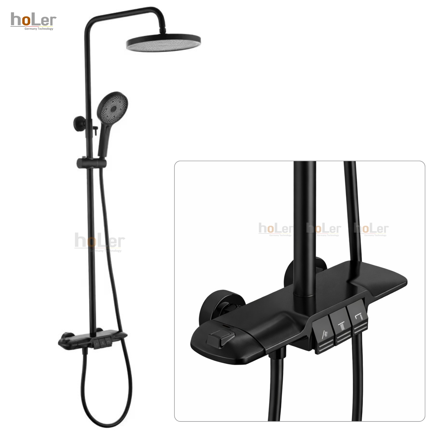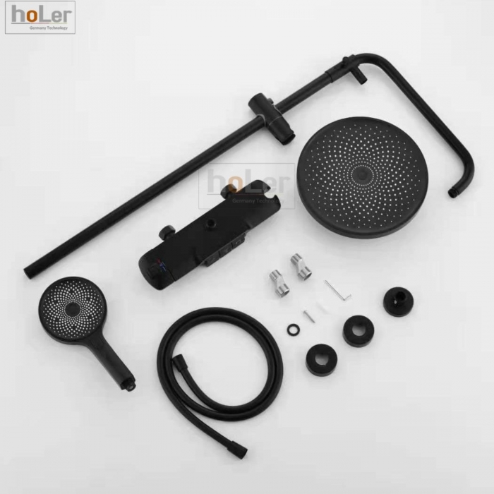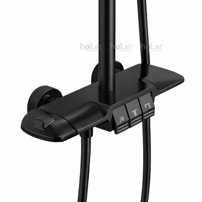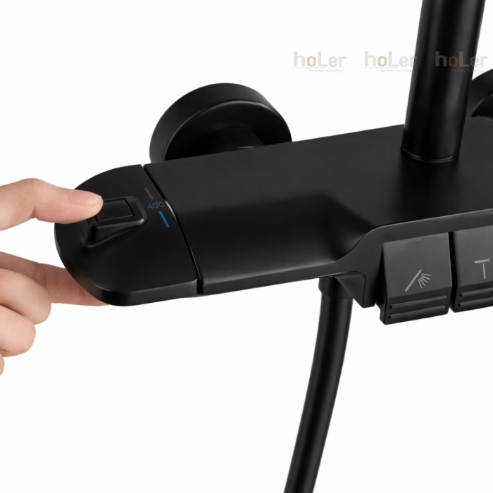 Sen Cây Tắm Đứng Chỉnh Nhiệt Đồng Thau Sơn Tĩnh Điện Đen Holer HL242