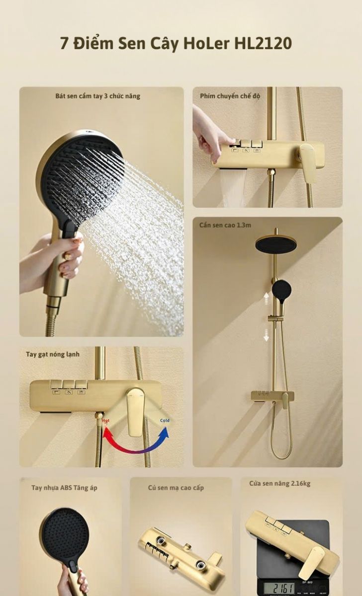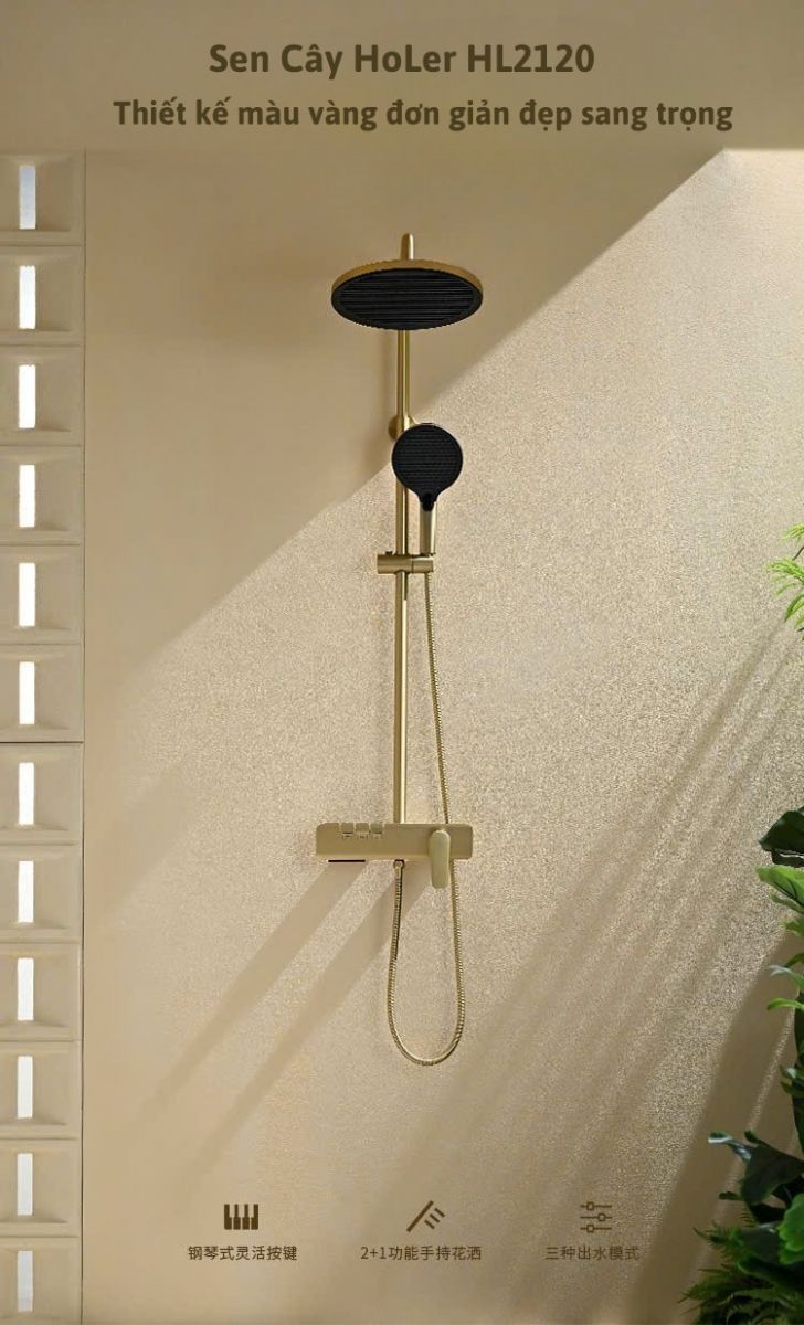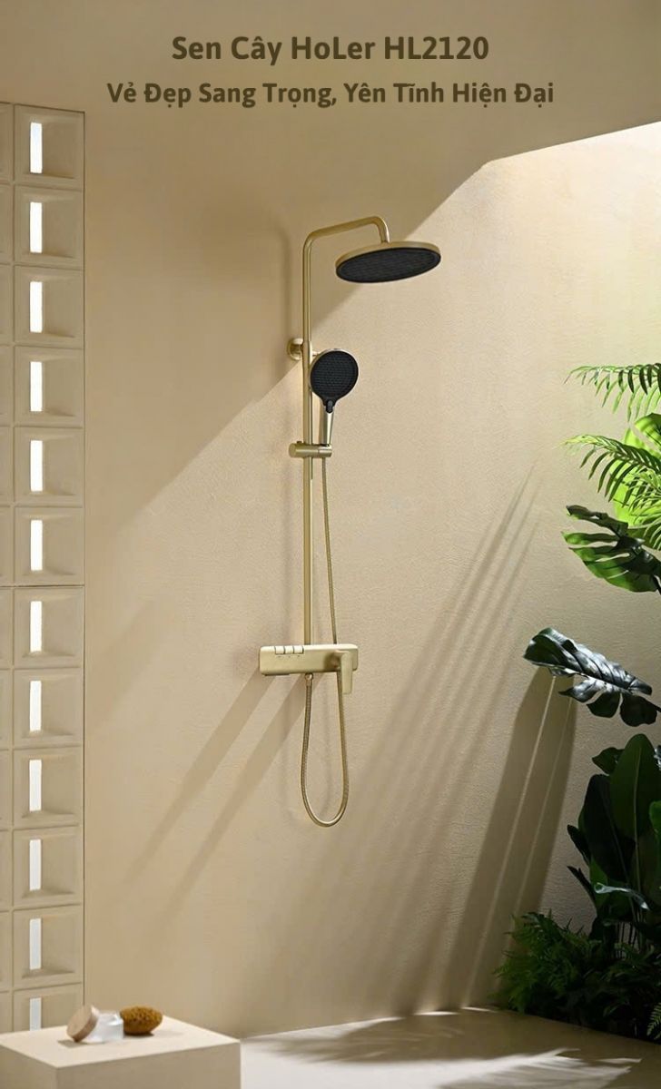 Sen Cây Tắm Đứng Đồng Thau Crom Holer HL2120 - Vàng