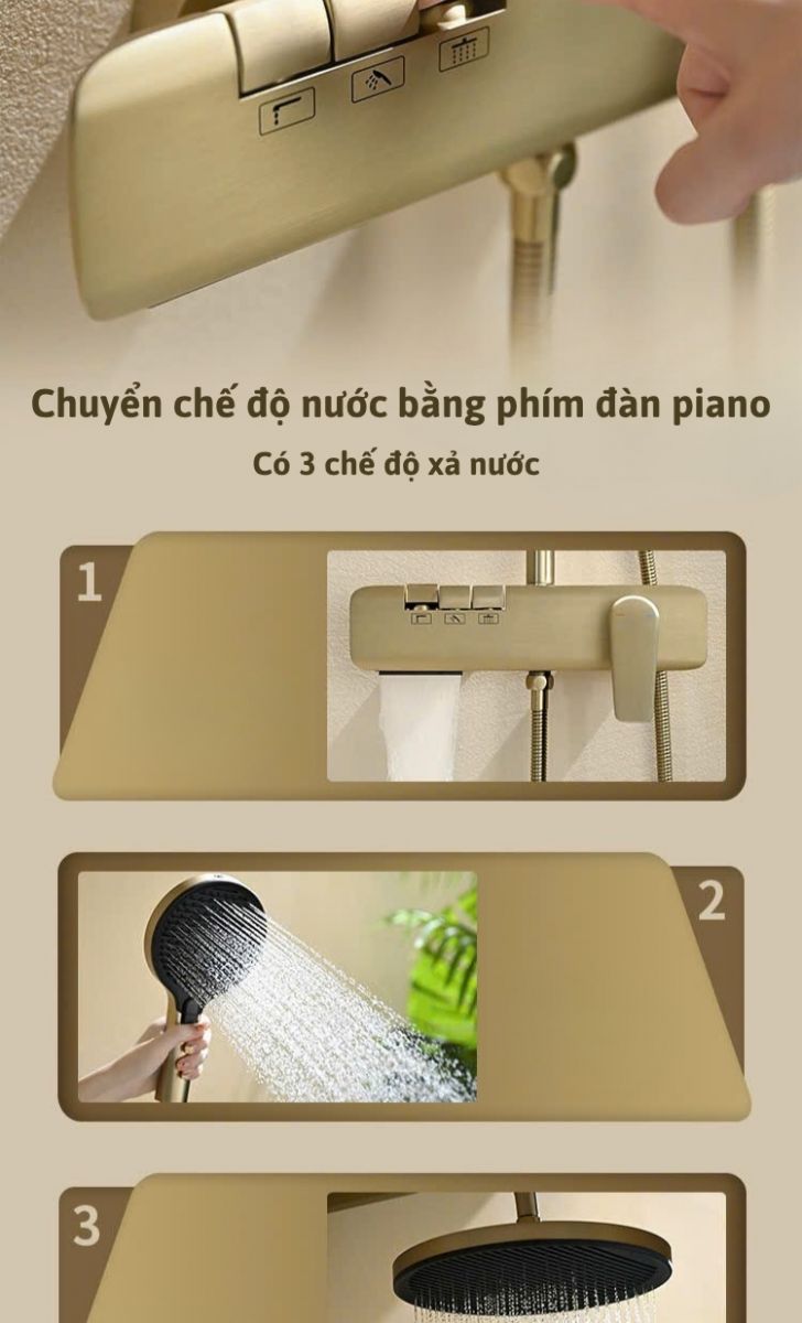 * 3 chế độ tắm : Tắm sen mưa, tắm tay cầm và xả chậu