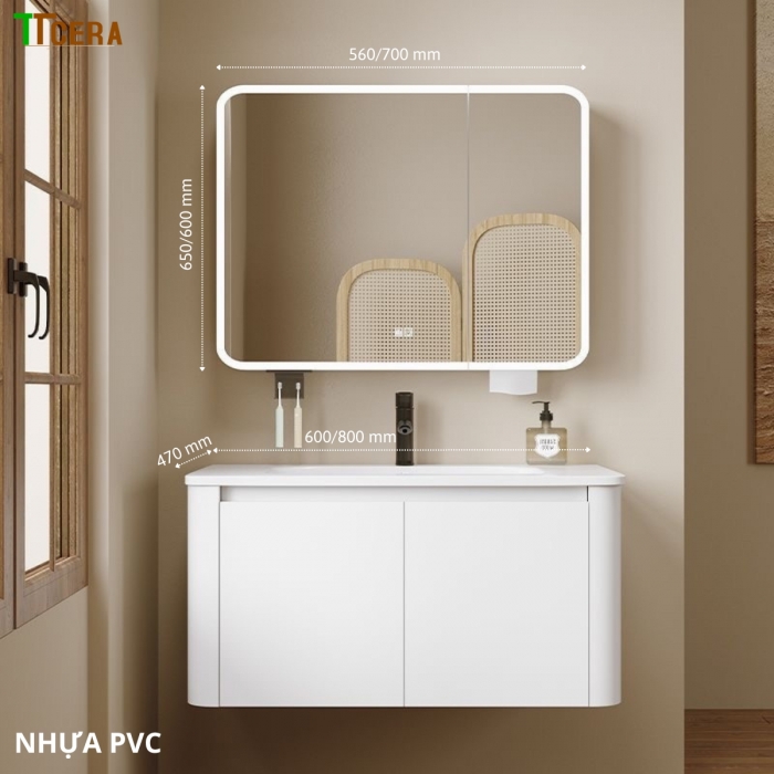 Tủ Lavabo Nhựa PVC Có Led TTCERA TLVB97 (Kích Thước Dài 60cm - 80cm)