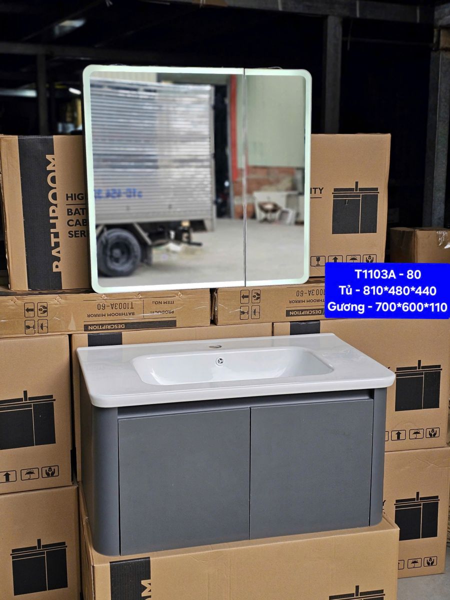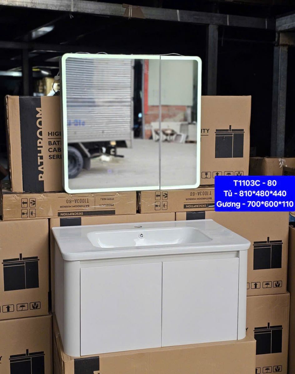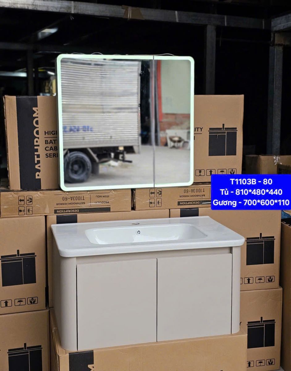 Kích thước tủ gương : 80x47cm ( Tủ Dưới: D80xR47xC44cm - Tủ Gương: D700xC600xR110 )
