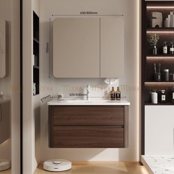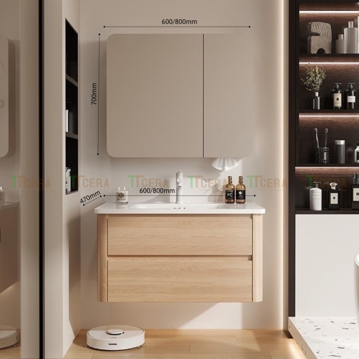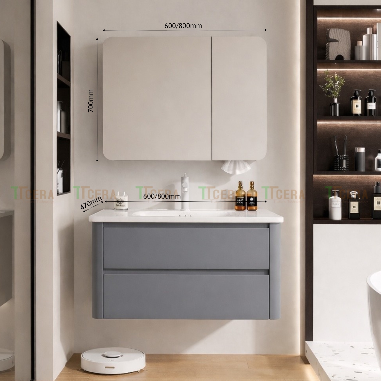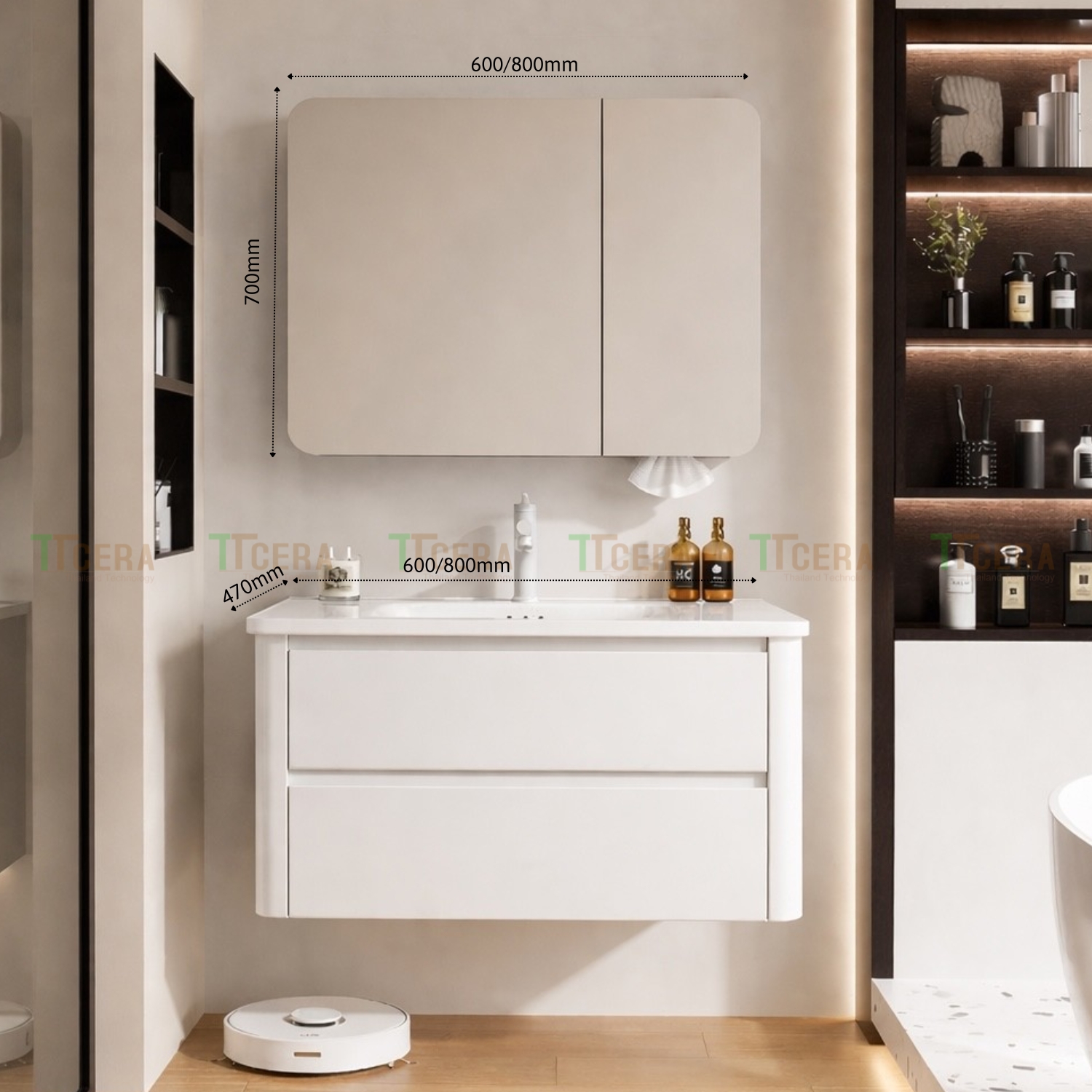 KT3: Tủ lavabo: 800x470mm + Tủ Gương: 800x700mm