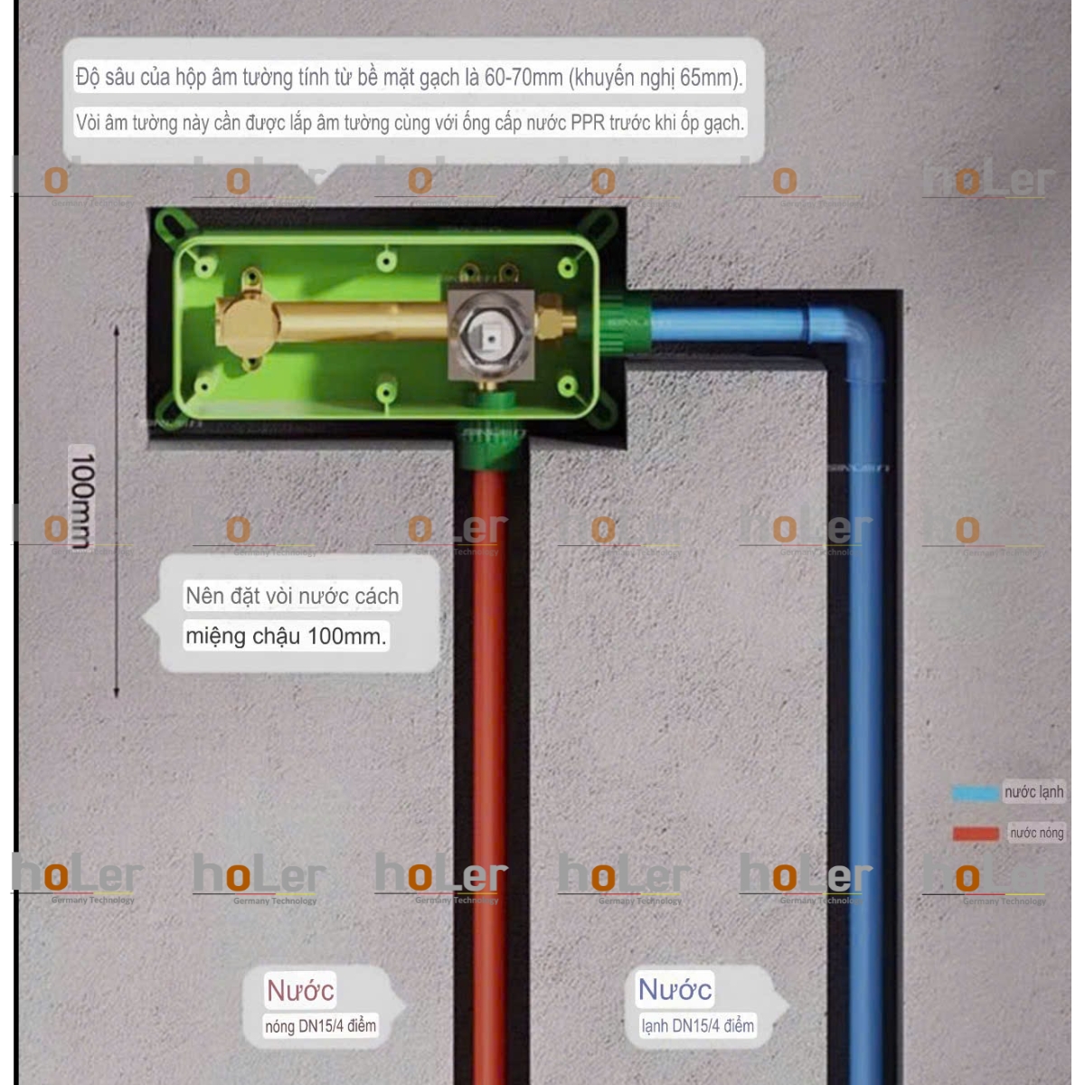 Vòi Lavabo Âm Tường Đồng Thau Sơn Tĩnh Điện Xám HoLer HL-LBA611