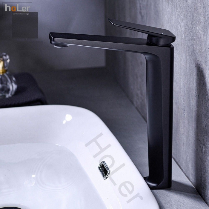 Vòi Lavabo Lạnh Đồng Sơn Tĩnh Điện Đen Cao 30cm Holer HL-LB636