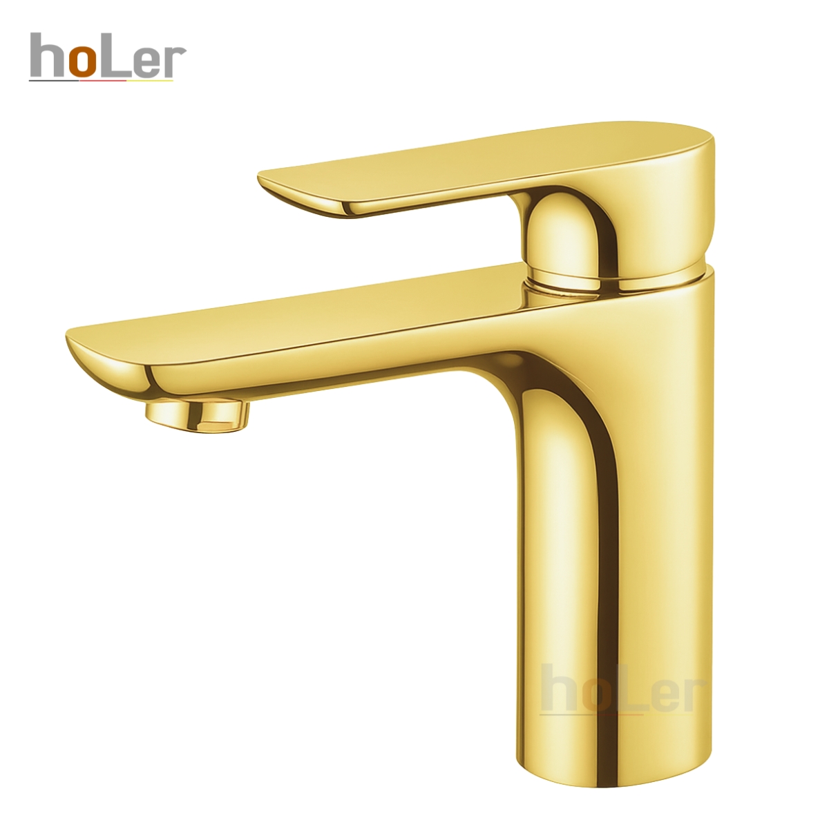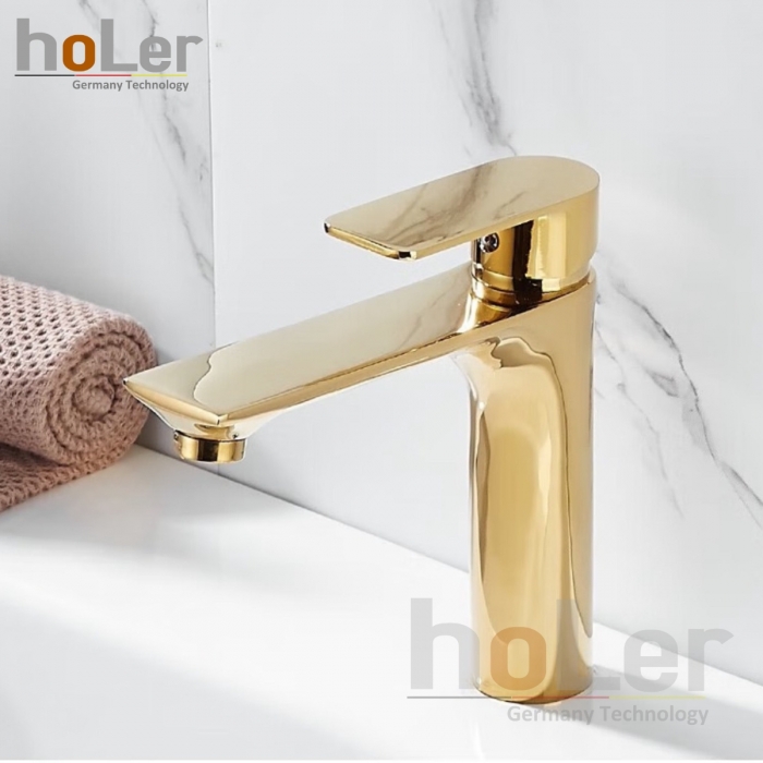 Vòi Lavabo Nóng Lạnh Đồng Mạ Vàng Holer HL-LB608