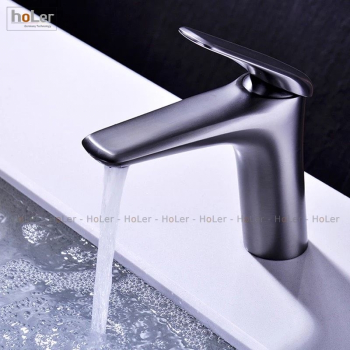 Vòi Lavabo Nóng Lạnh Đồng Sơn Tĩnh Điện Xám Holer HL-LB655