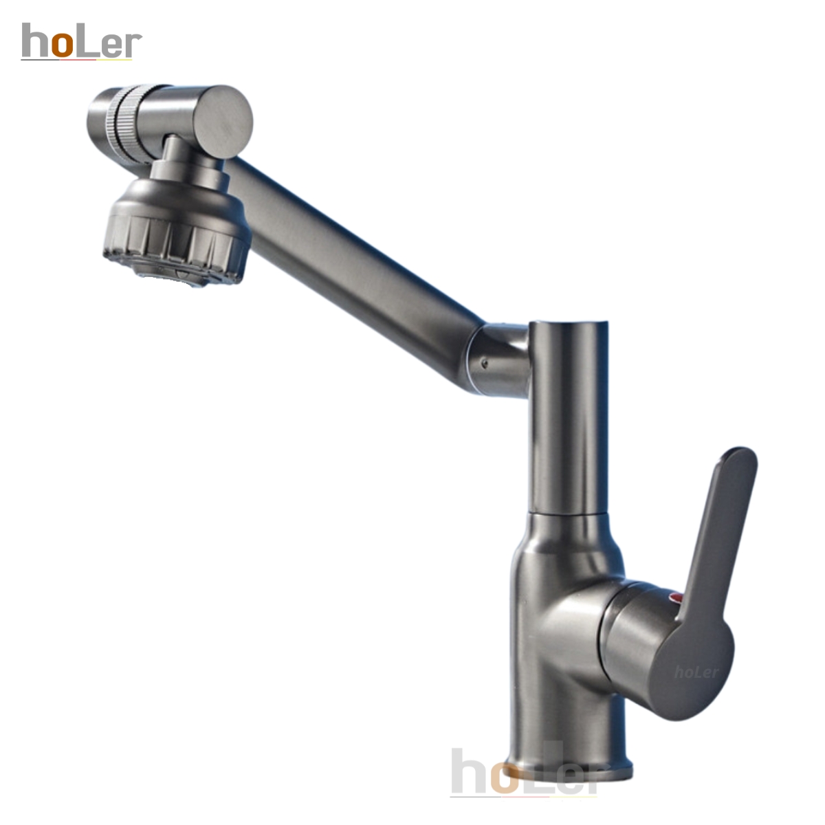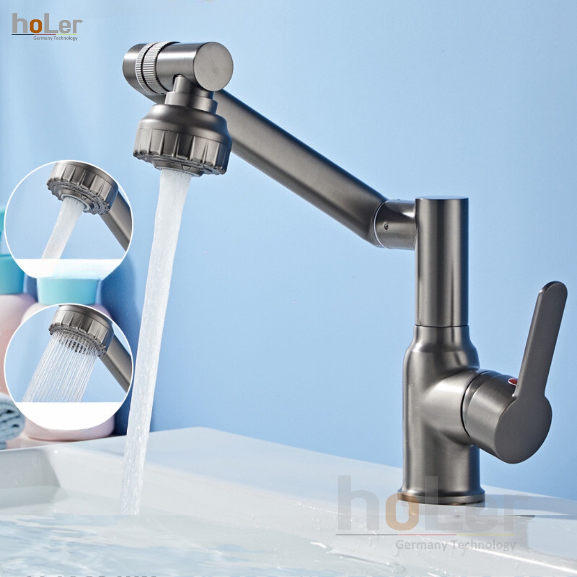 Vòi Lavabo Nóng Lạnh Inox 304 Xoay 720 Độ Holer HL-LB649 ( Màu Xám - Màu inox )