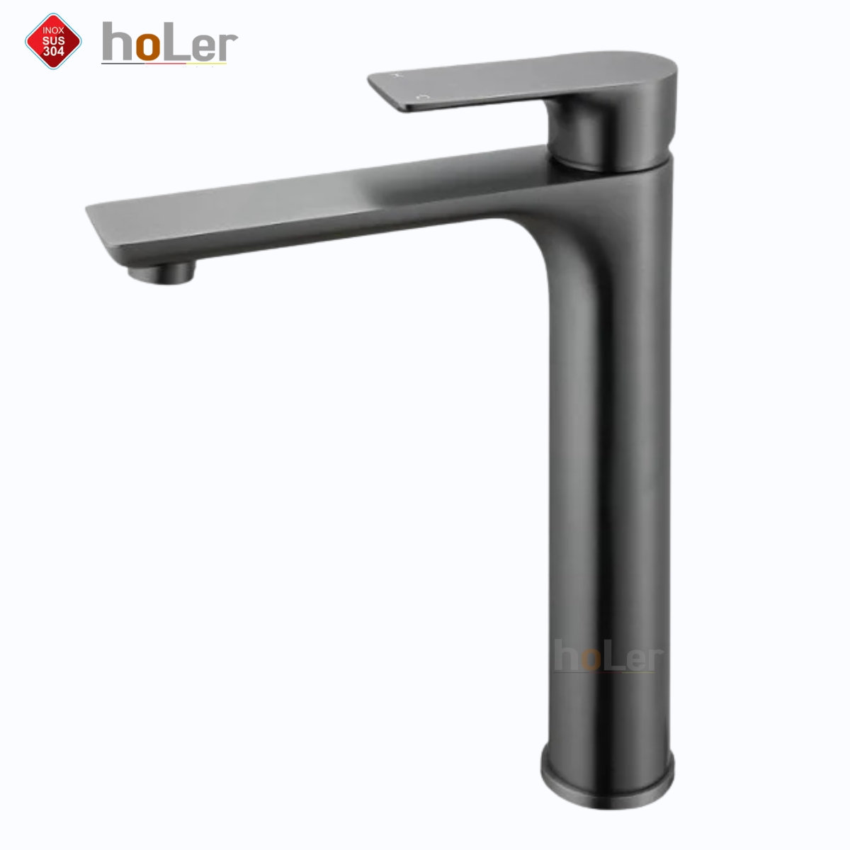 Vòi Lavabo Nóng Lạnh Inox Sơn Tĩnh Điện Xám Cao 30cm Holer HL-LB635