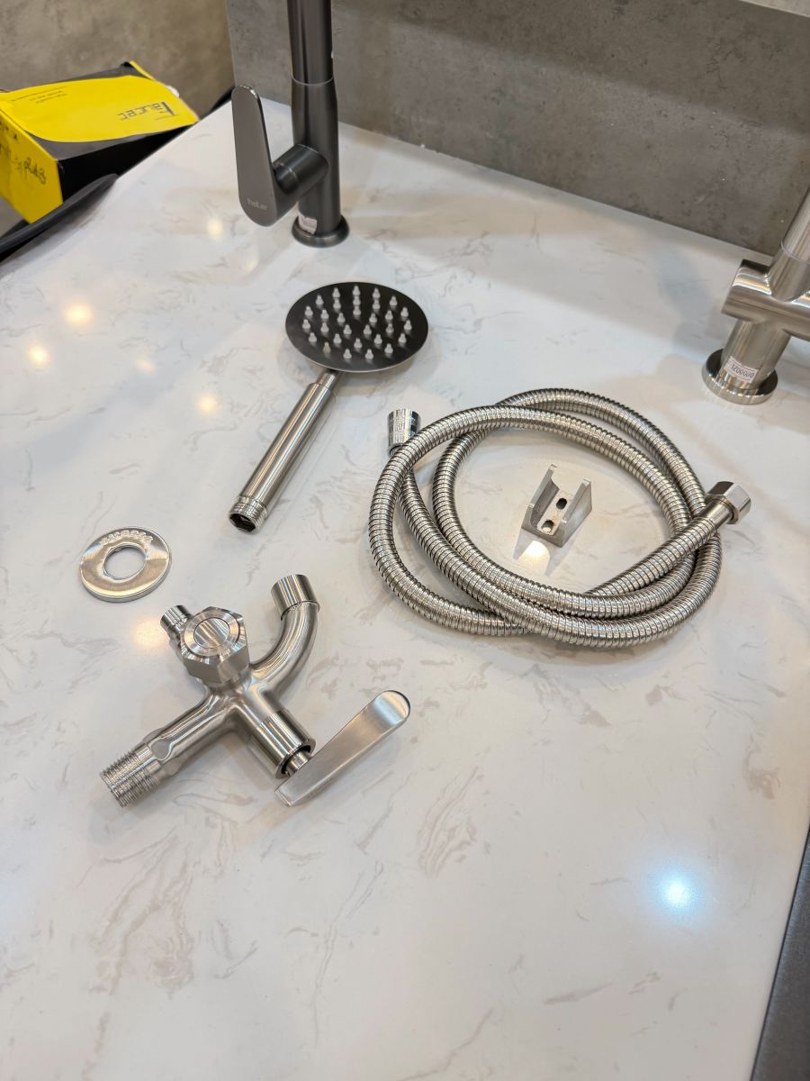 - Chất liệu: Inox 304. Tất cả các bộ phận của sen tắm được cấu tạo từ inox 304 với nhiều ưu việt: Chống oxy hóa, không bị ăn mòn, không bong tróc, hoen gỉ. Tăng tuổi thọ, duy trì vẻ ngoài sáng bóng và an toàn cho sức khỏe.